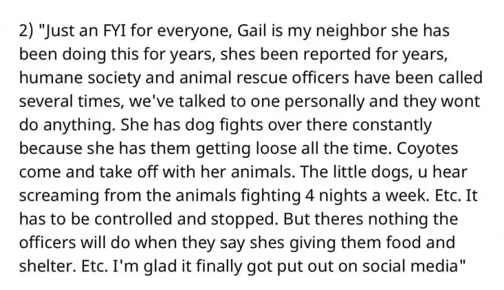 Sadly, Ms. Tillotson is the last hope for the abused dogs on Ms. Oaksmith’s property.