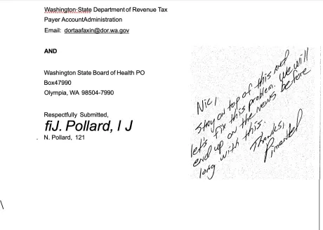 On one of the reports that Officer Pollard submitted about Ms. Oaksmith in early 2018, Dave Pimentel, the former Deputy Sheriff of Grays Harbor County wrote a note to Officer Pollard that said, “Stay on top of this and let’s fix this problem. We will end up on the news before long with this.”